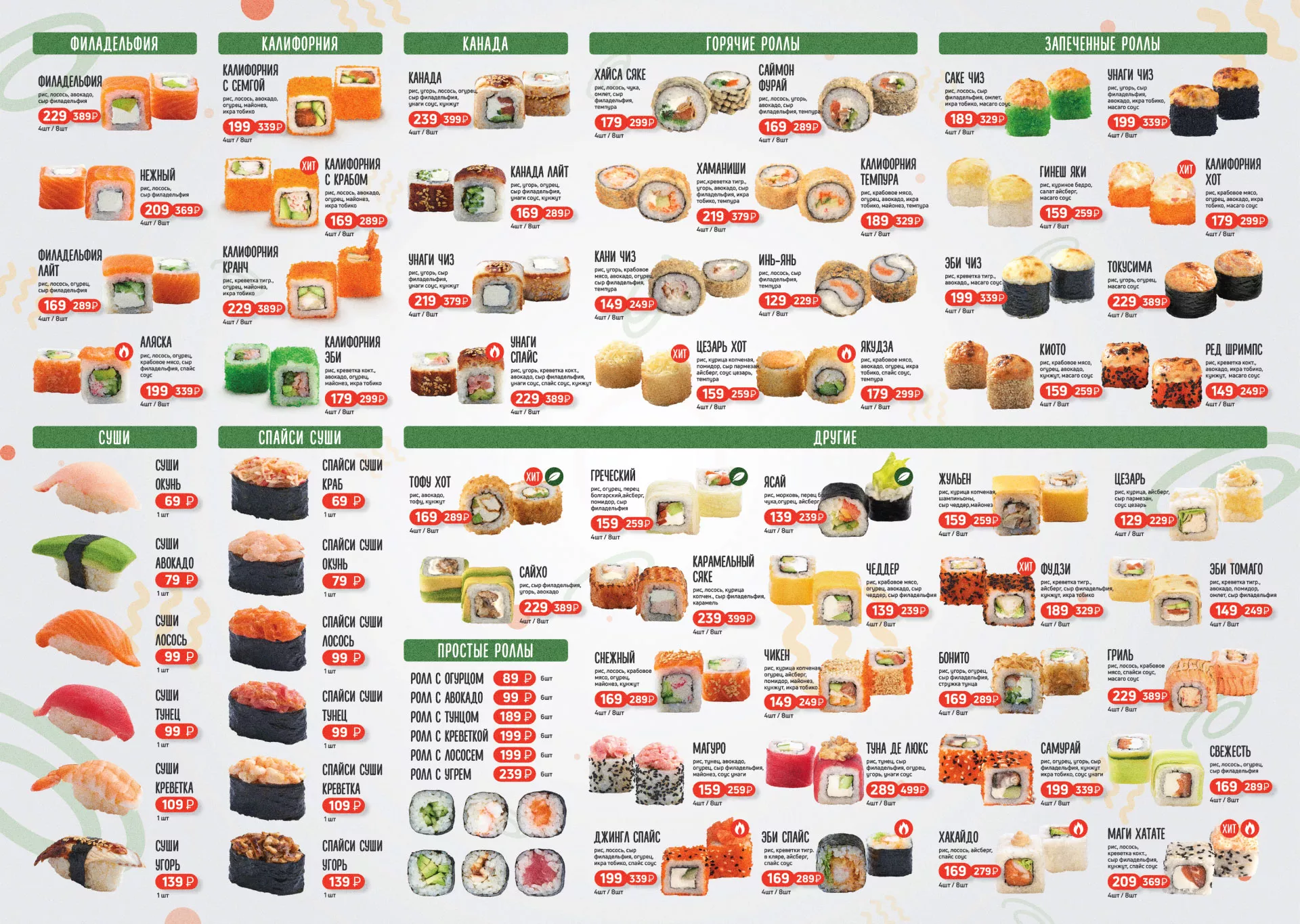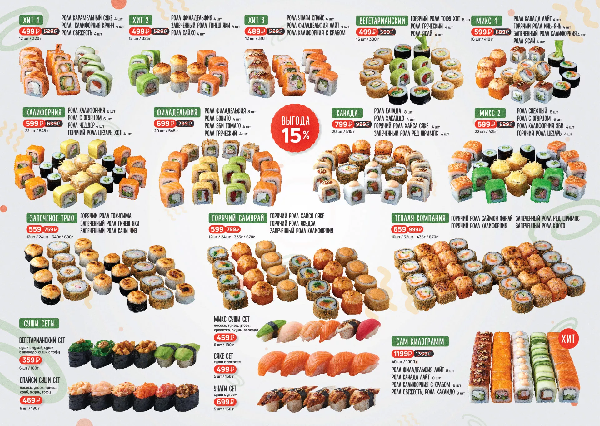 Оформление меню суши-бара «Roll Wok Club» в Краснотурьинске