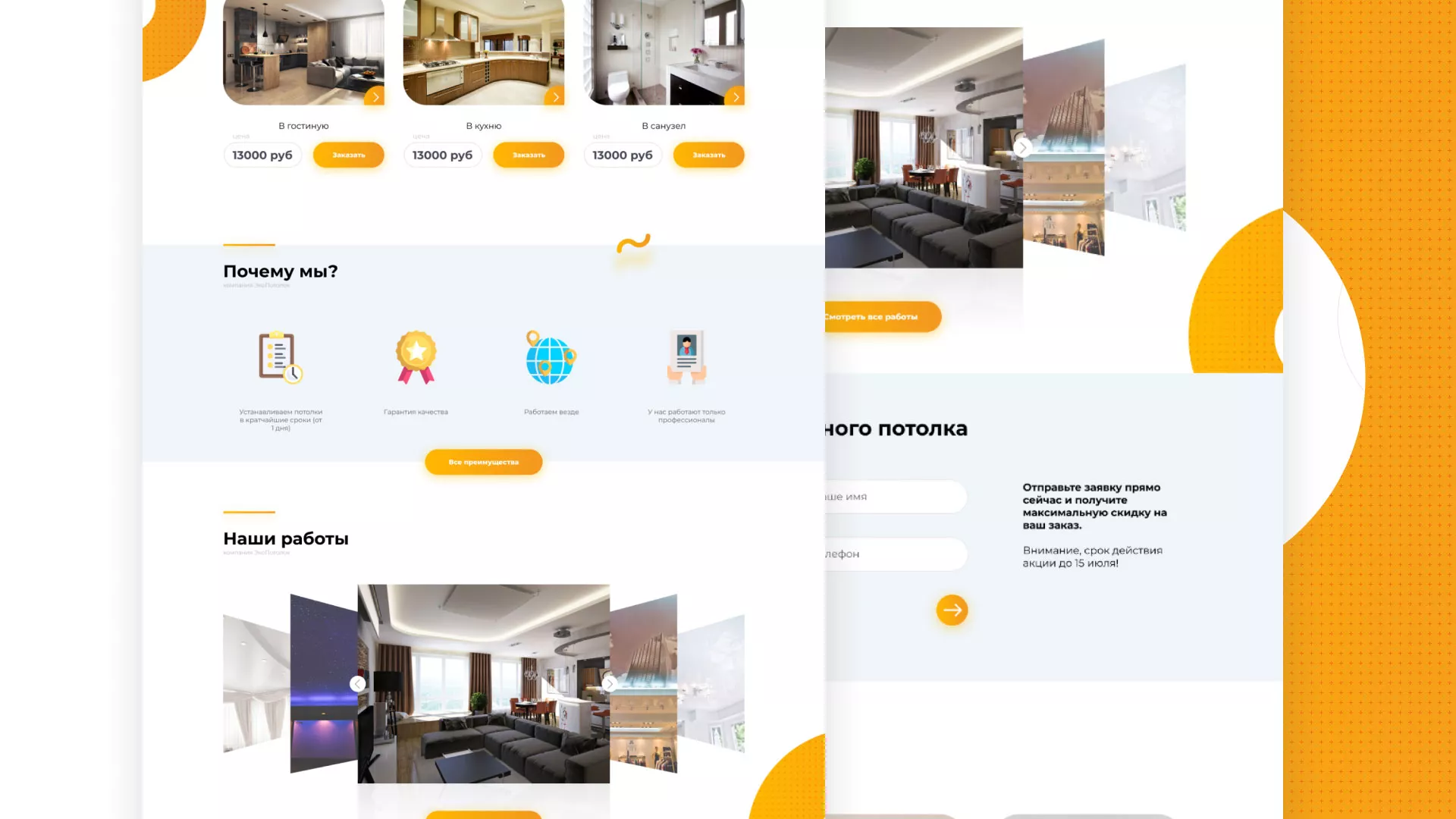 В нашем портфолио в Краснотурьинске Вы можете найти большое количество вариантов готовых сайтов, среди которых есть и сайты по натяжным потолкам. Все проекты выполнены с учётом пожеланий заказчиков, многие из которых стали нашими друзьями.