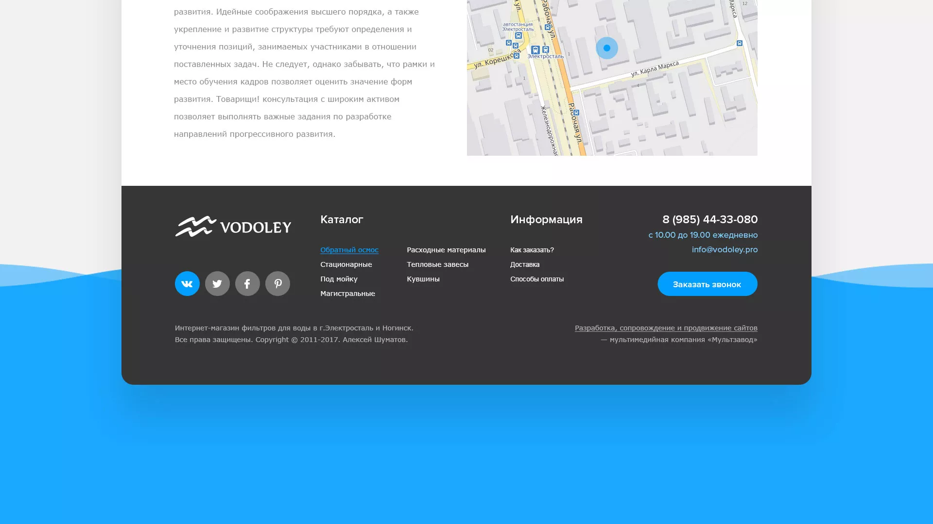 Работать с компанией «Мультзавод» удобно и легко, поэтому, если Вам требуется создание аналогичного сайта по продаже и установке фильтров очистных сооружений в Краснотурьинске, мы предложим Вам действительно выгодные цены и удобные условия сотрудничества. Мы обещаем, что вложенные в разработку сайта деньги окупятся и Вы получите современный рабочий интернет-магазин!